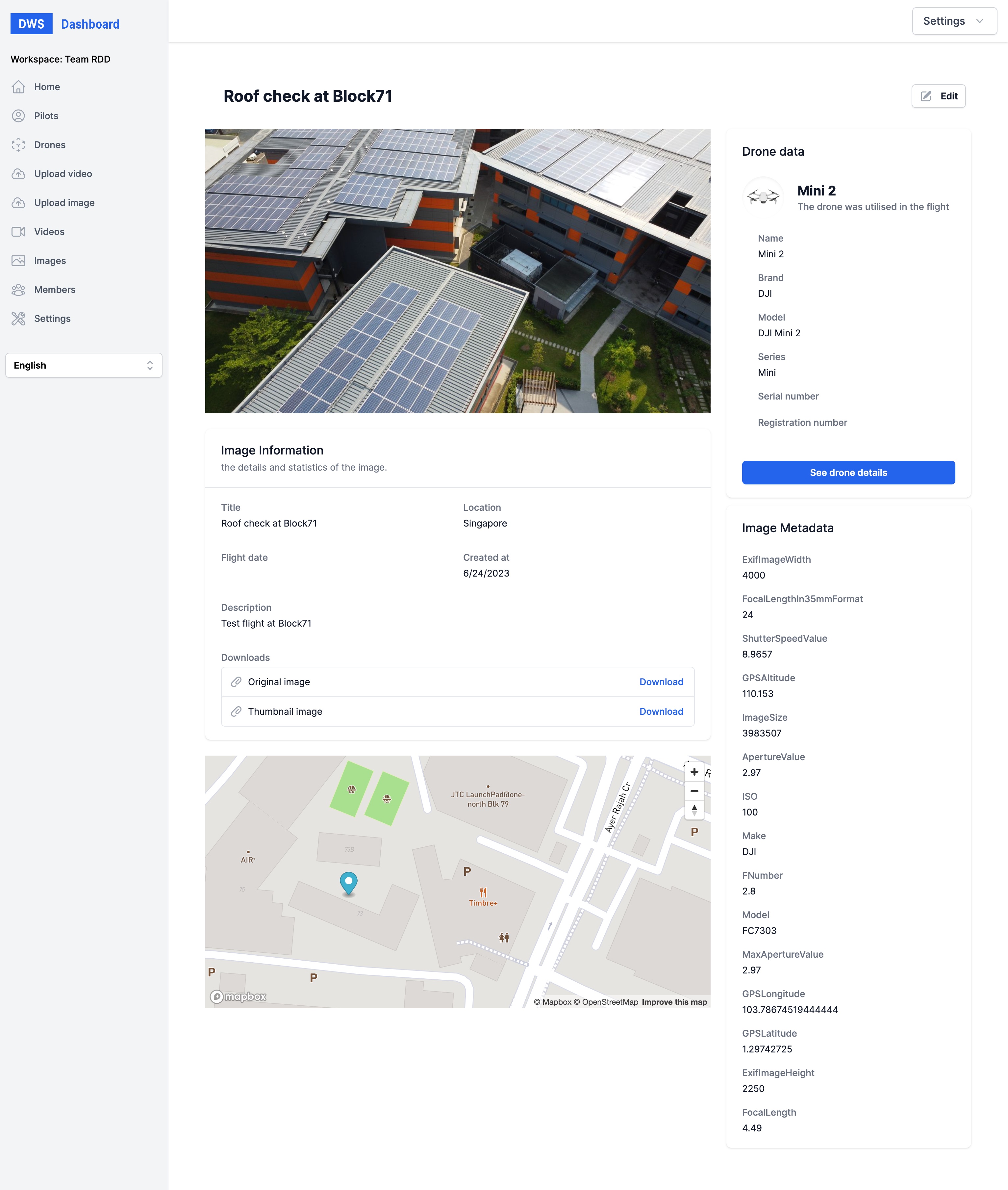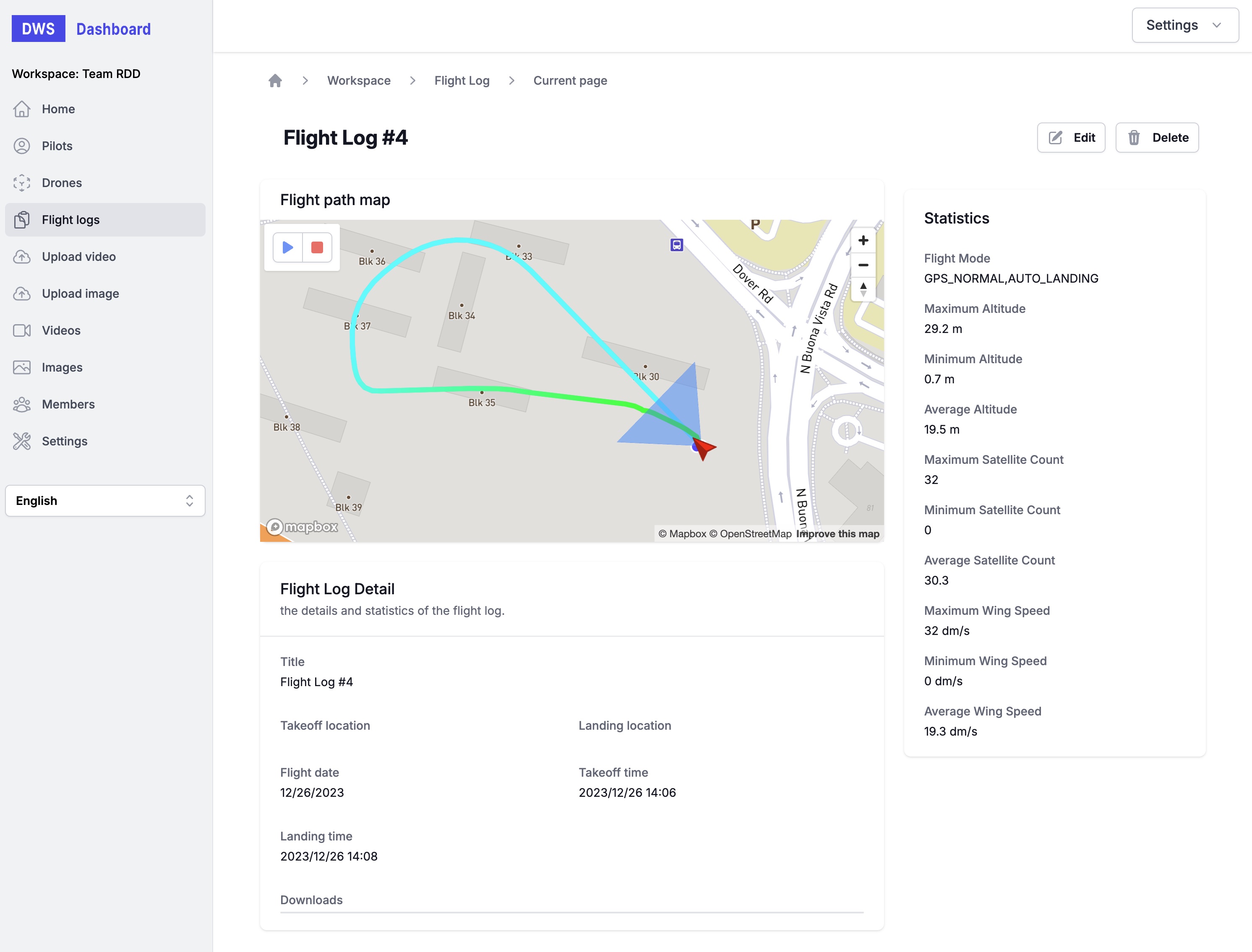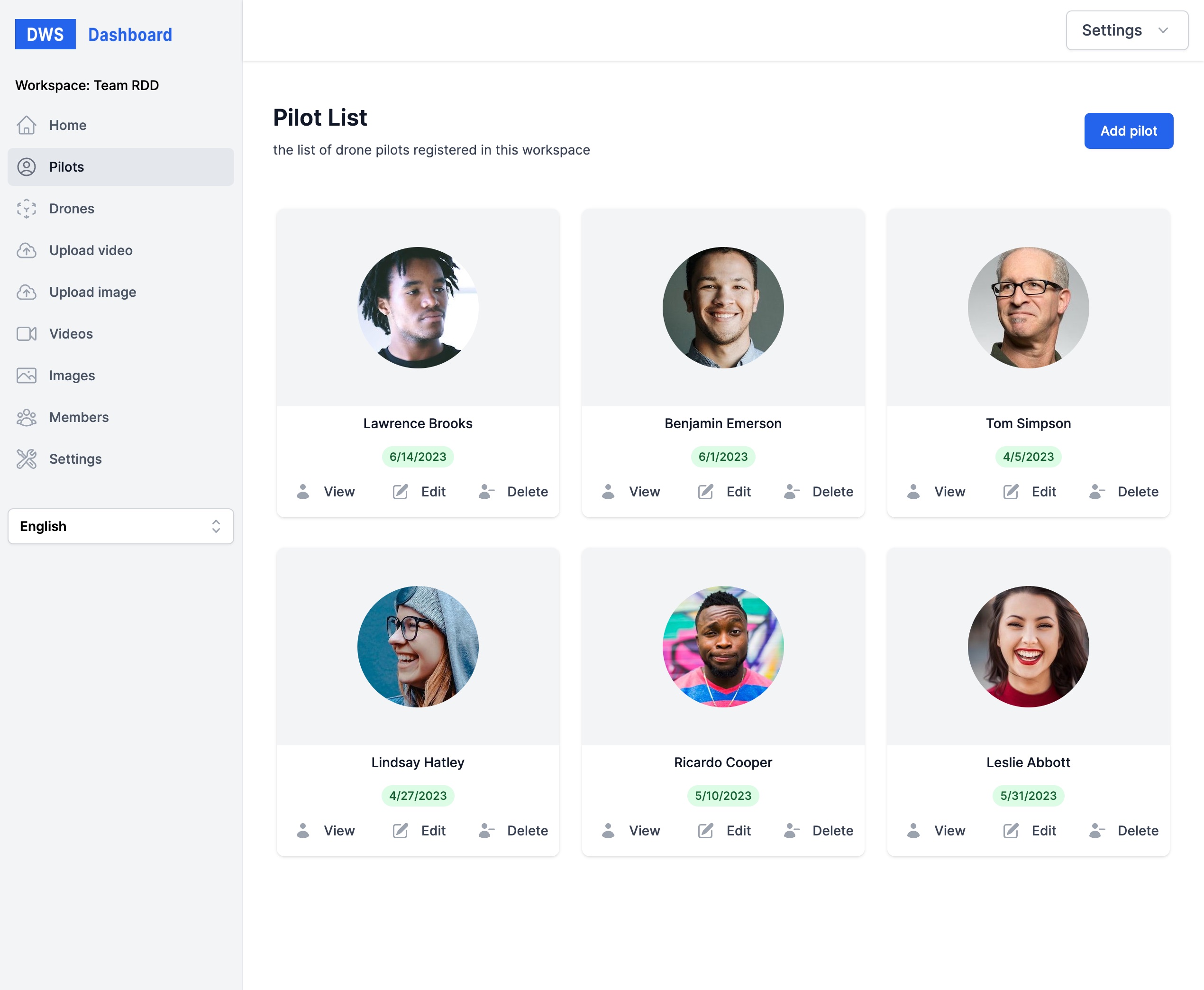 DWS offers the ability to manage your drone operations, including your pilots, drones, and flights. You can also upload images and videos to your account.