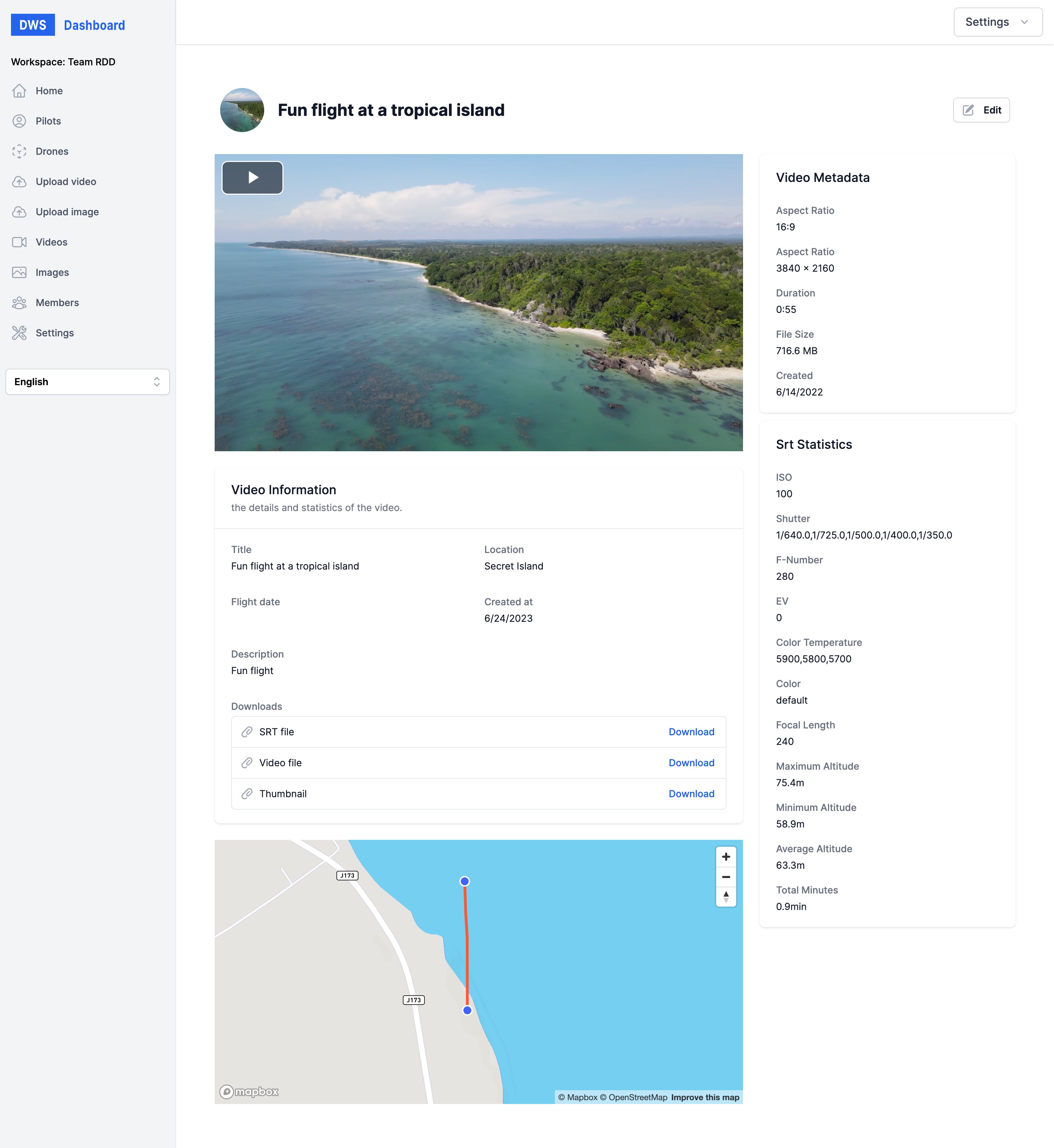 Uploading and managing aerial videos with metadata is a breeze with our simple interface.